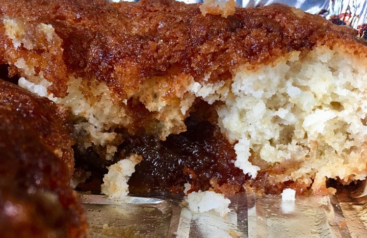 - Transfer batter to greased baking dish, then sprinkle the brown sugar topping over the top.