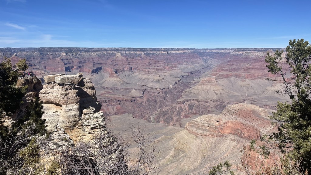 Afterwards, we headed off to the Grand Canyon. I really enjoyed the drive around this area. It was very foresty and rocky at the same time — almost like some of the Colorado landscape. But when we arrived at the Grand Canyon after waiting in long lines of cars and driving around looking for a parking space, nothing could compare. It was so enormous that our eyes couldn’t even grasp how big it was. The expanse of it was so much to grasp that it felt like you were looking at a 2-D image of it. There was a state trooper with a telescope looking into the canyon. He was letting everyone look through it to look at the little village at the bottom. I would’ve never guessed there would be people down there just living!