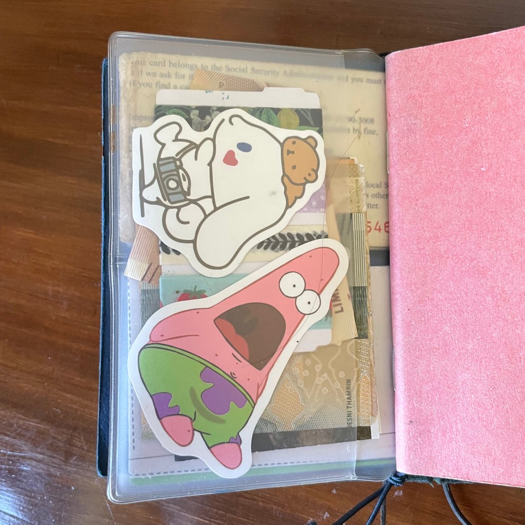 Insert 1: This is my regular journal, a lined midi-sized soft cover Paperblanks journal. I won’t say it’s a daily journal because I probably only write in it once or twice a week. This is where I process my thoughts and insert ephemera, for more intentional journaling. I’ve divided it into monthly sections and make a collage for each monthly section. The journal itself is a bit smaller than the traveler’s notebook (TN), but I don’t mind. For some reason, I always felt like the inserts in a TN had to be the same size, but after seeing people’s setups on TikTok I’ve realized that the different sizes actually add to the aesthetic of it and it isn’t as inconvenient and impractical as you would think,