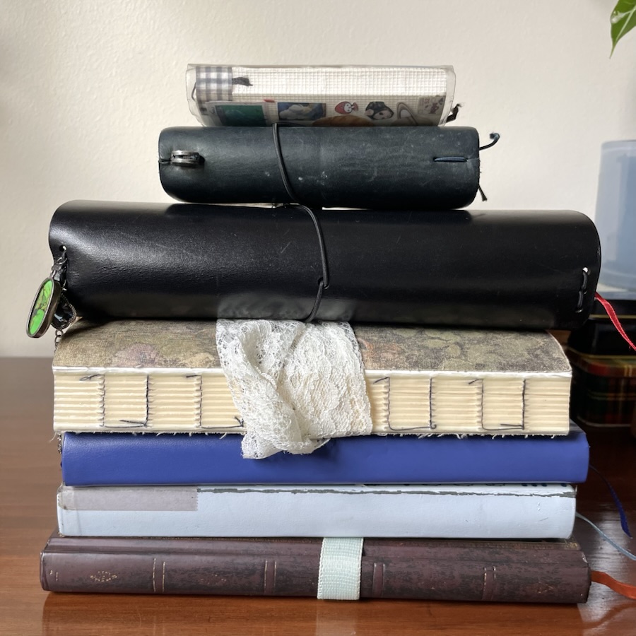 Slow Design canvas journal, blank: I use this journal for collaging/junk journaling my travels, memories, and current interests. I make sure to collect ephemera from my travels or from a notable experience. It’s like an updated/modern version of a scrapbook. I attached a lace ribbon to the spine in order to secure the journal as it expands over time.